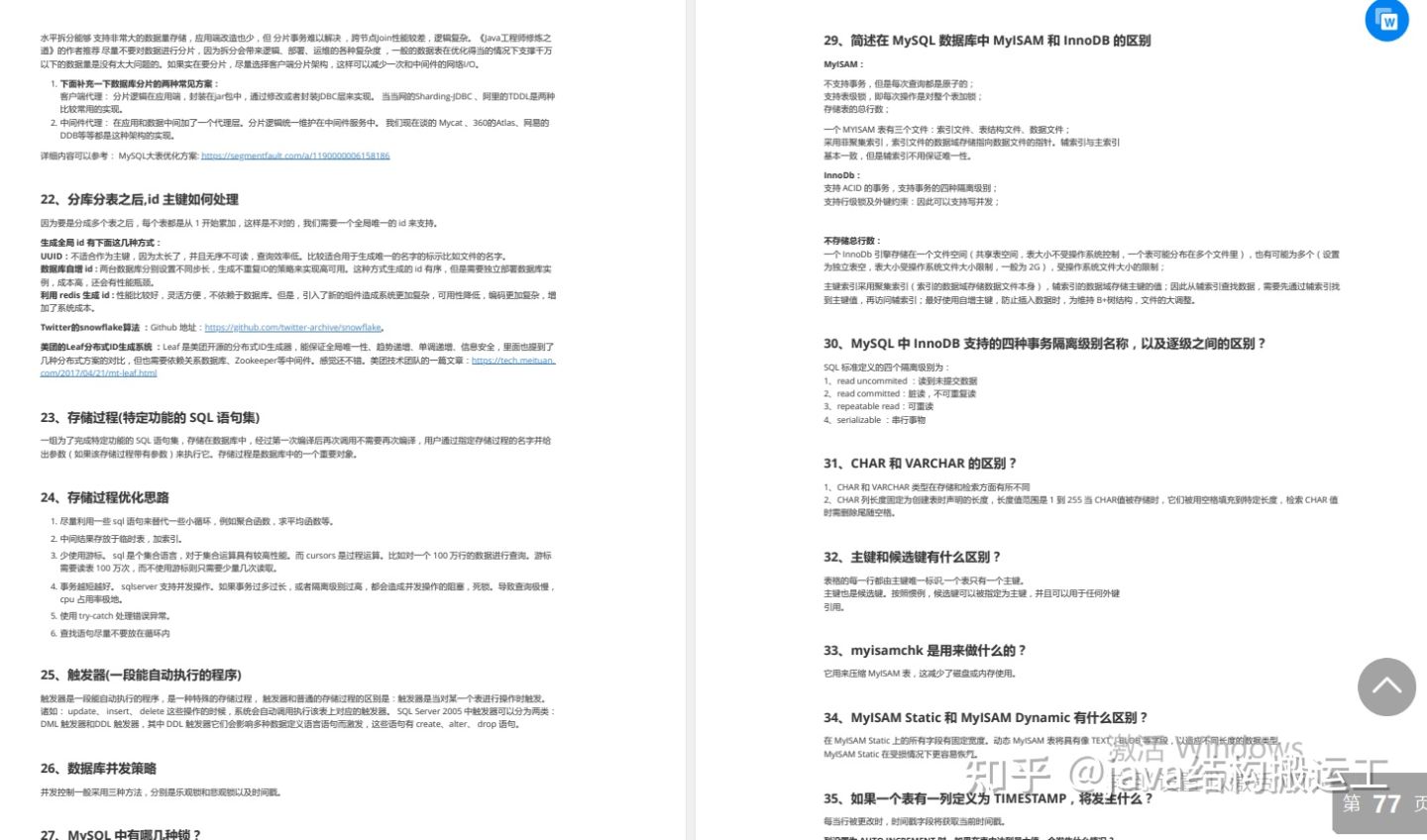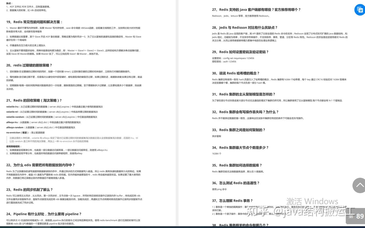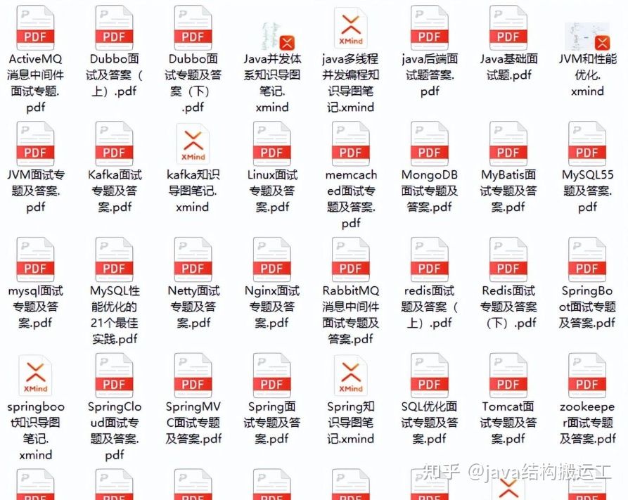 其中概括的知识点有:Java、MyBatis、ZooKeeper、Dubbo、Elasticsearch、Memcached、Redis、MySQL、Spring、Spring Boot、Spring Cloud、RabbitMQ、Kafka、Linux 等技术栈共有1000+道面试题