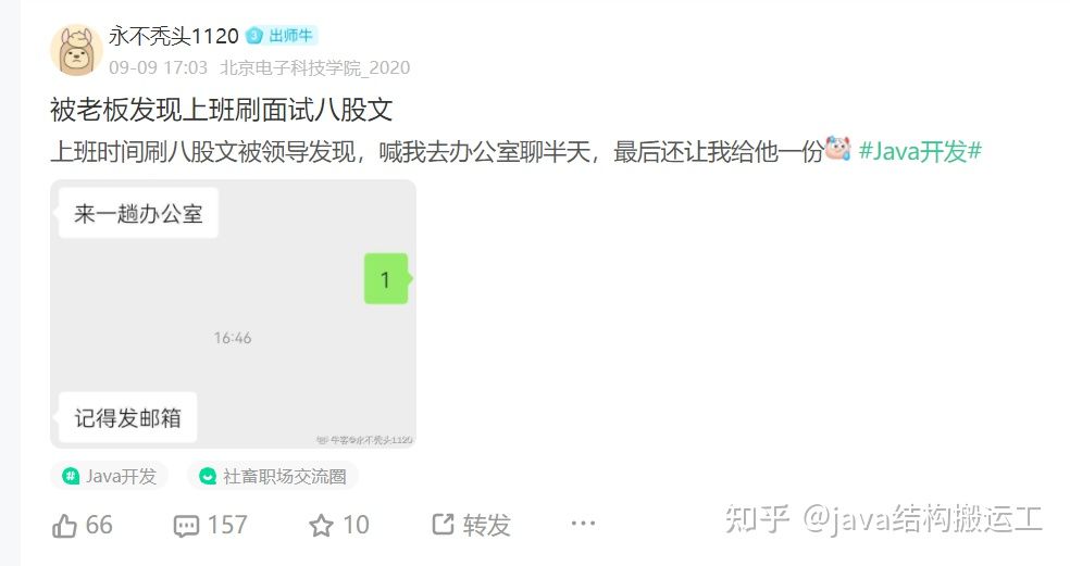 今天偶尔刷刷牛客看到这,很多小伙伴在上班刷八股文!真行啊?能火到这种程度!