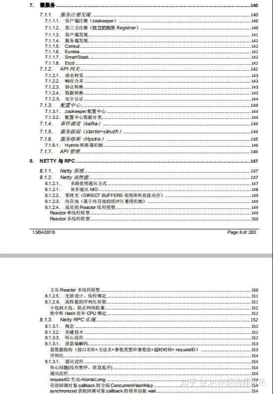 由于文案过于长,在此就不一一介绍了,核心知识总结知识点除此之外还包括有Netty与 RPC 、网络、日志 、Zookeeper 、Kafka 、RabbitMQ 、Hbase 、MongoDB、Cassandra 、24种设计模式、负载均衡、数据库、一致性算法、Java算法、数据结构、分布式缓存等等知识详解。
