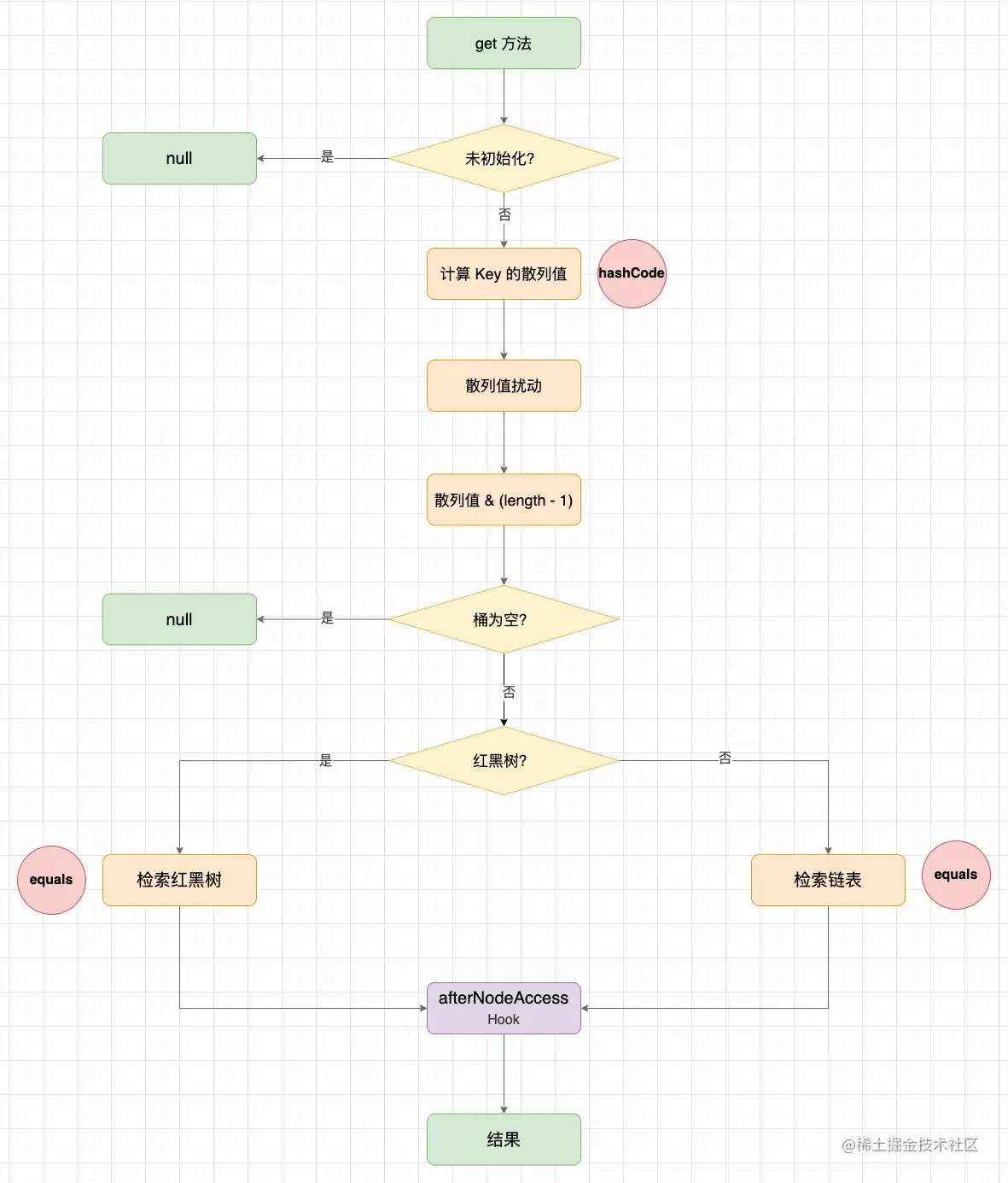 除此了这 3 个空方法外,LinkedHashMap 也重写了部分 HashMap 的方法,在其中插入双链表的维护逻辑,也相当于 Hook 点。在 HashMap 的添加、获取、移除方法中,与 LinkedHashMap 有关的 Hook 点如下: