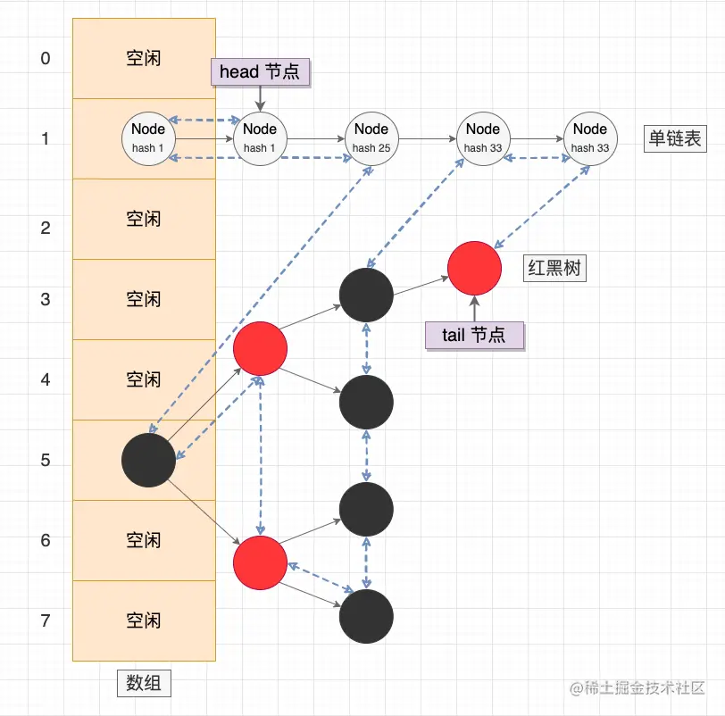需要注意:LinkedHashMap 中的 “Linked” 实际上是指双向链表,并不是指解决散列冲突中的分离链表法。
