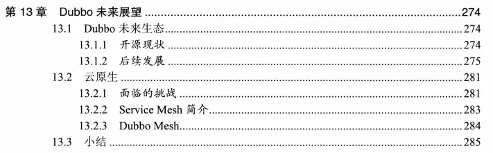 第13章主要介绍Dubbo的未来生态和DubboMesh相关知识。