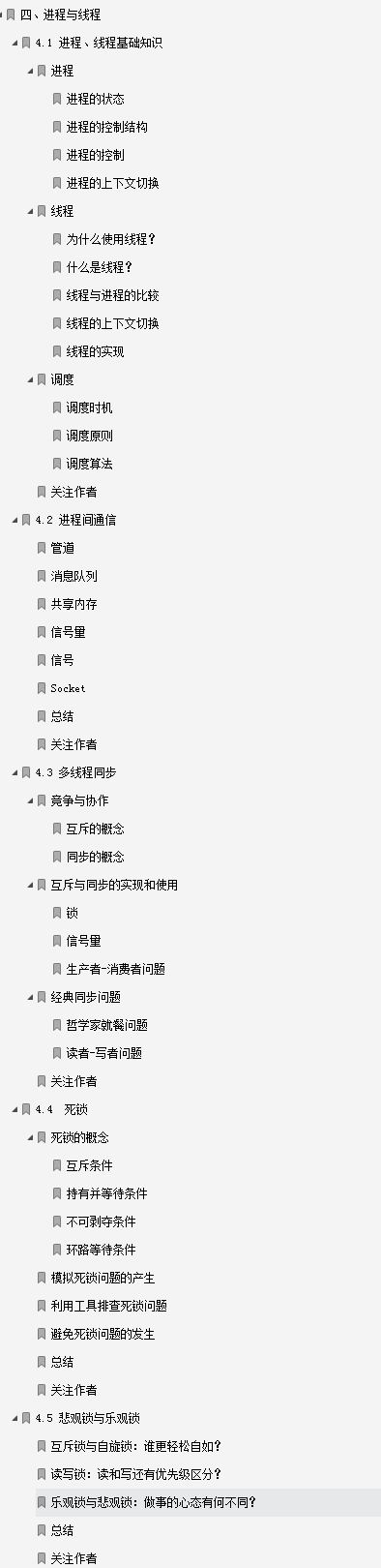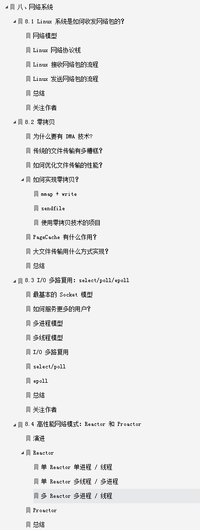 当然还是操作系统的内容占比较高,基本把操作系统进程管理、内存管理、文件系统、设备管理、网络系统这五大结构图解了,其中进程管理和网络系统这两个章节篇幅比较多,进程管理不仅包含了进程与线程的基本知识,还包含了进程间通信,多线程同步、死锁、悲观锁和乐观锁。网络系统包含 I/O 多路复用、零拷贝、Reactor 等等。
