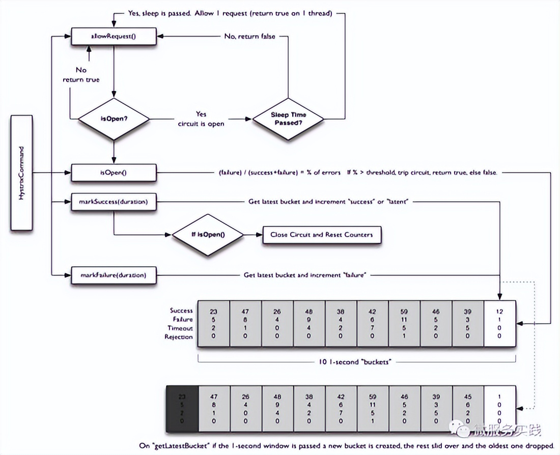 下图是Netflix的开源项目Hystrix中的熔断器的实现逻辑: