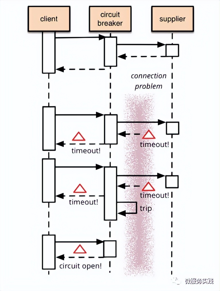 - Open状态:在该状态下,客户端请求会立即返回错误响应,而不调用服务端。
