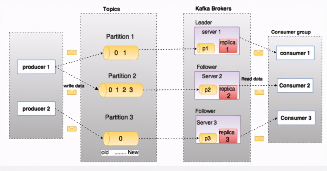 - Partition:为了实现扩展性,一个非常大的topic可以分布到多个broker(即服务器)上,一个topic可以分为多个partition,每个partition是一个有序的队列。