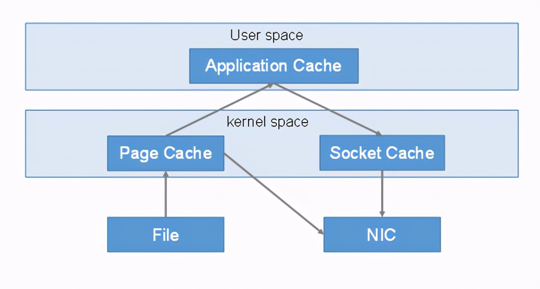 重新思考传统IO方式,会注意到实际上并不需要第二个和第三个数据副本。应用程序除了缓存数据并将其传输回套接字缓冲区之外什么都不做。相反,数据可以直接从读缓冲区传输到套接字缓冲区。