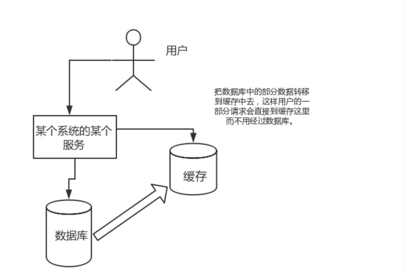 直接操作缓存能够承受的请求是远远大于直接访问数据库的,所以我们可以考虑把数据库中的部分数据转移到缓存中去,这样用户的一部分请求会直接到缓存这里而不用经过数据库。