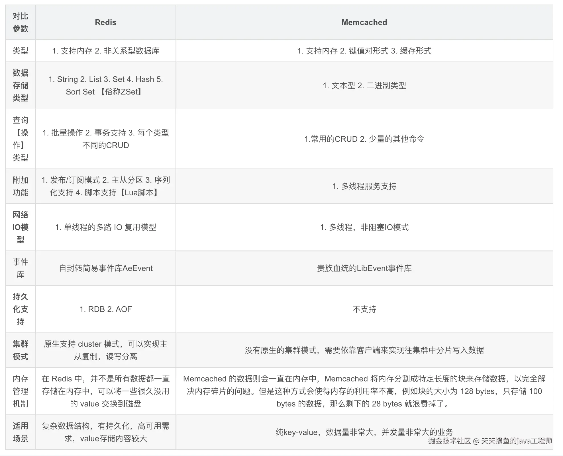 两者都是非关系型内存键值数据库,现在公司一般都是用 Redis 来实现缓存,而且 Redis 自身也越来越强大了!Redis 与 Memcached 主要有以下不同: