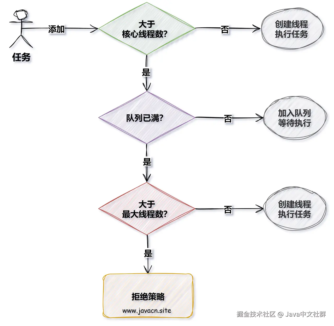 线程池的拒绝策略是指,当线程池无法承载更多任务时执行的行为。也就是当线程池的核心线程数、最大线程、任务队列都满的情况下,又来了新的任务时,线程池执行的行为被称之为线程池的拒绝策略。