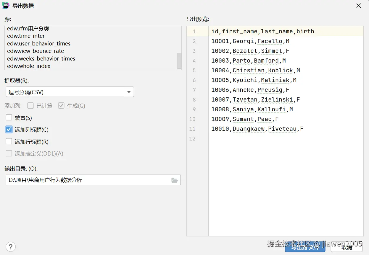 右键视图,选择将数据导出到文件,导出到合适的文件夹。大概半小时左右即可导出成功。一定要选择添加列标题,方便可视化。