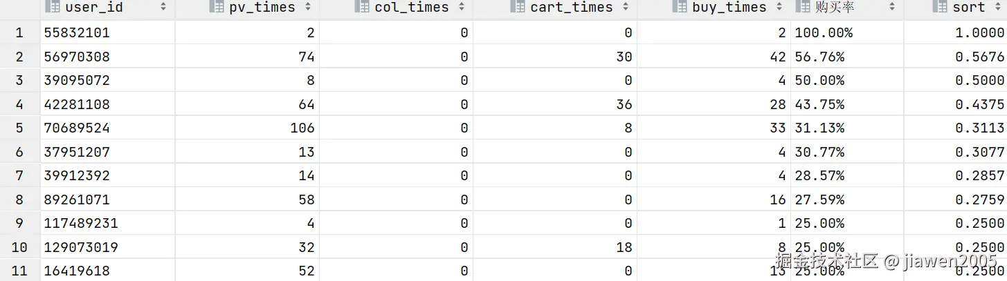 /sum(case when behavior_type = 'pv' then 1 else 0 end) sort