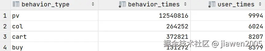 用户行为漏斗behavior_times,uv独立访客漏斗user_times。代码如下: