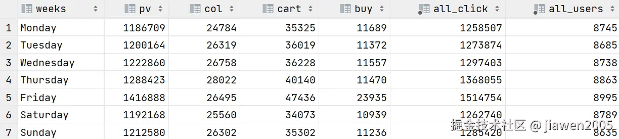 从时间维度的日期、时段、星期,来观察用户行为。代码如下: