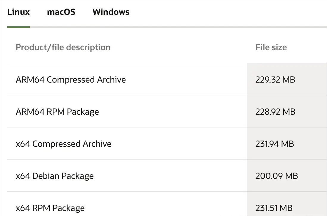 如上图,Oracle提供的JDK二进制包,在不同的平台下,不同的CPU架构有不同的JDK包。