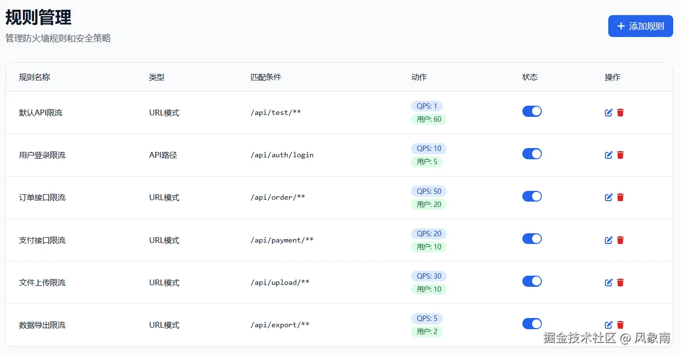 在线配置:提供前端控制台,实时修改规则,立即生效,无需重启。
