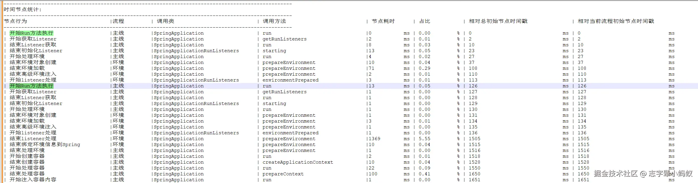 - 这里我专门做了一些简单的配置 ,可以看到这些对启动的影响微乎其微 (这里先不考虑 Cloud 取配置) 其实可以理解 ,在不获取远程配置的情况下 ,整个过程中无非就是内存里面的处理