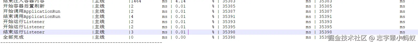 我贴了一个我这边启动中规中矩的一个项目的处理栈 ,整个大概花了 35s , 来分析一下 :