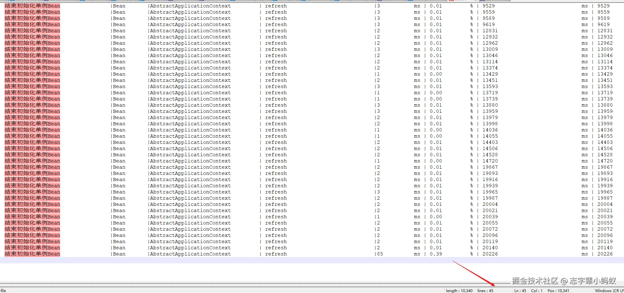 - S1 : 在需要记录的位置运行断点 Log :StopWatchExpand.start("Bean","开始-创建RedisClient")