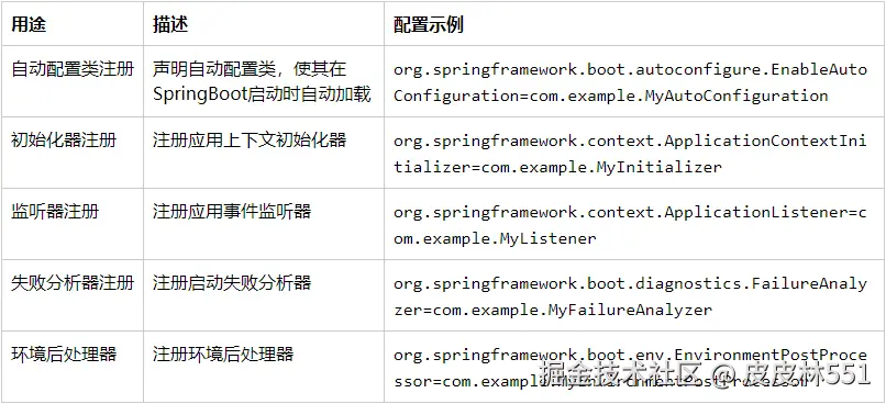 在SpringBoot 3.0之前,spring.factories文件有以下几个主要用途: