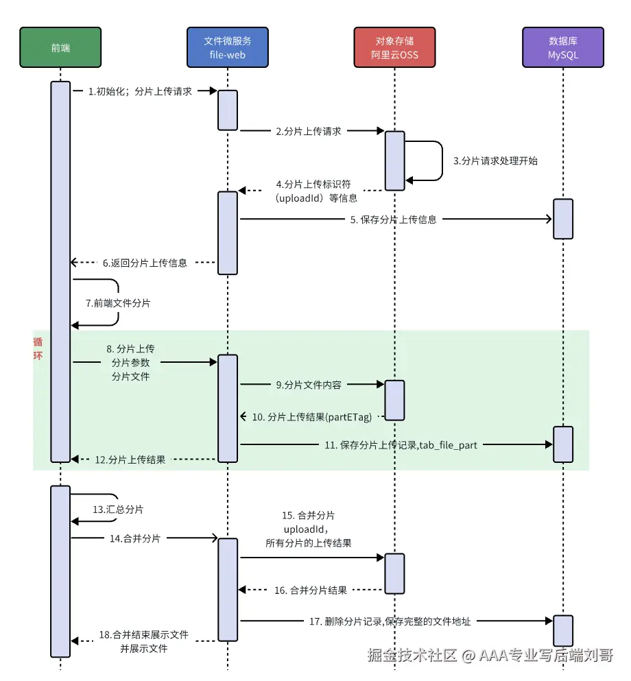 后端接收后,先存到临时文件夹,比如/tmp/oss-chunks/${fileMd5}/${chunkIndex}