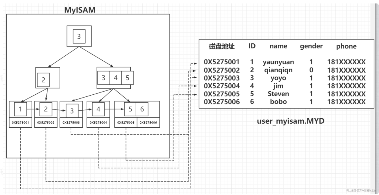 3 B+树能提高范围查询的效率,因为叶子节点指向下一个叶子节点