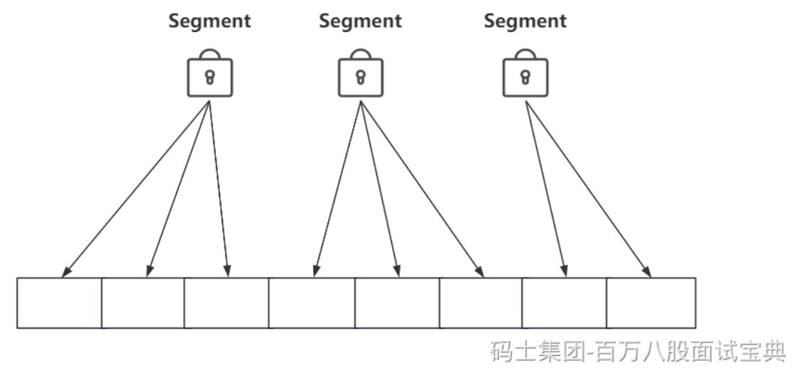 JDK1.7中的ConcurrentHashMap是基于分段锁来保证的线程安全。