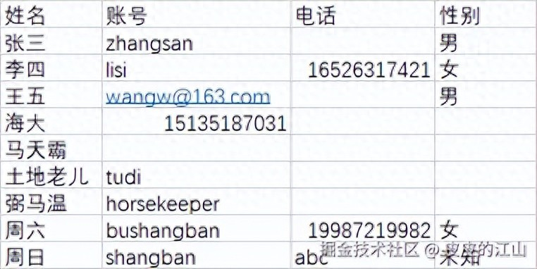 下面是用户智能导入功能的模拟数据: