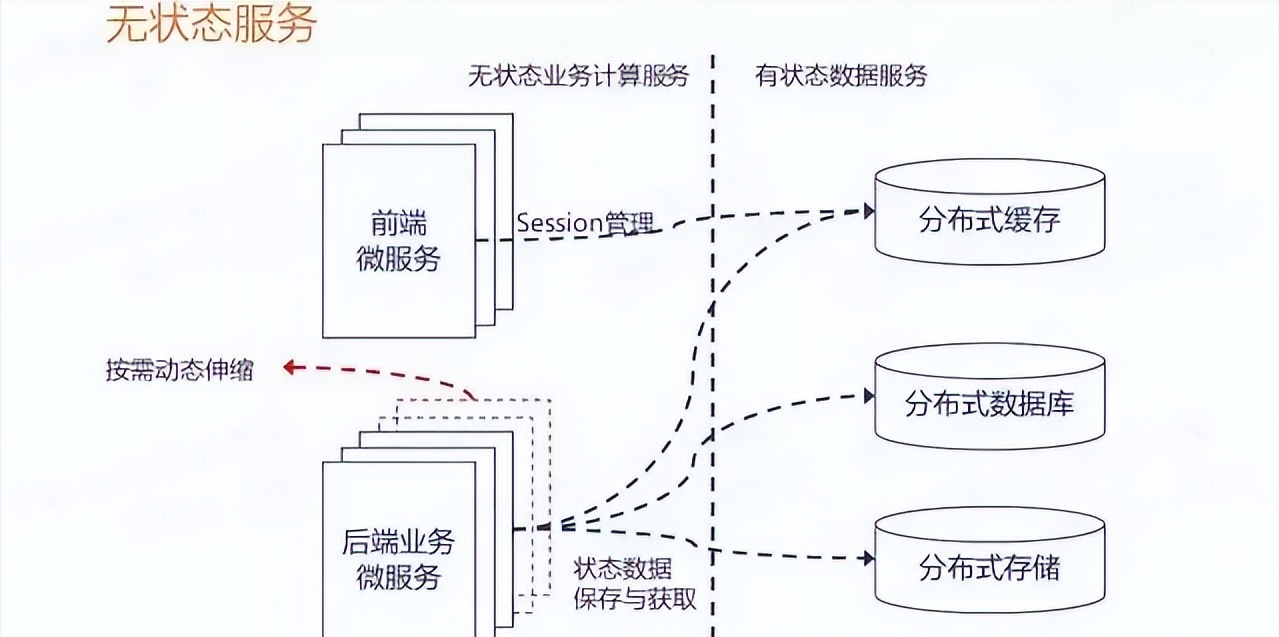 好处:横向扩容超级简单,随时加机器,随时销毁,弹性伸缩非常友好。