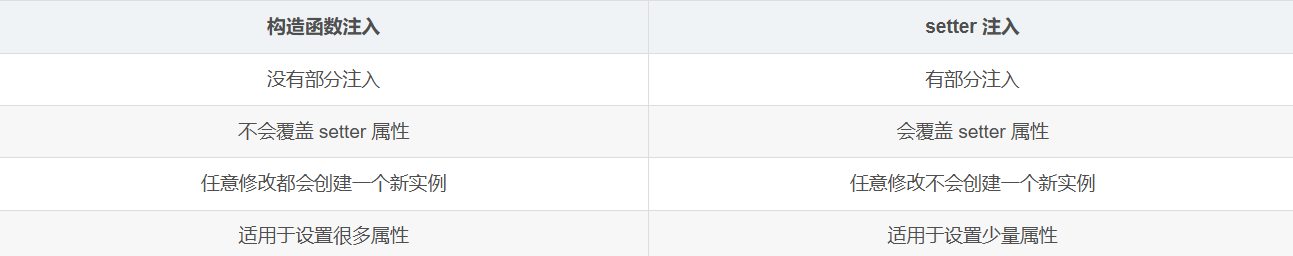 在 Spring Framework 中,仅使用构造函数和 setter 注入。