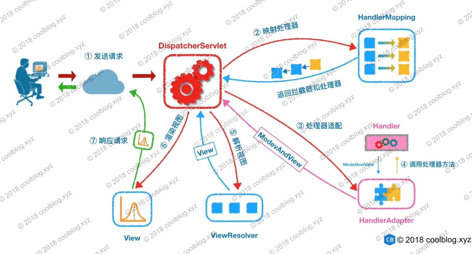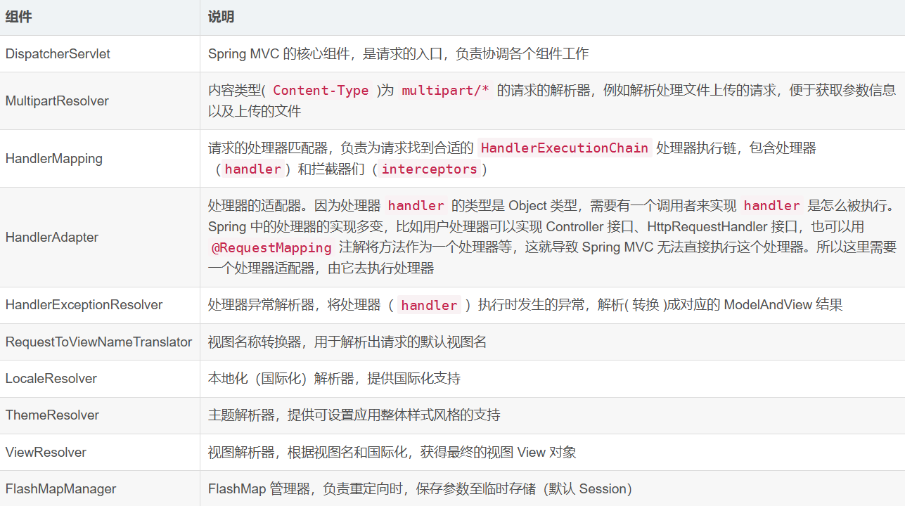 那么接下来就简单介绍一下 DispatcherServlet 和九大组件(按使用顺序排序的):
