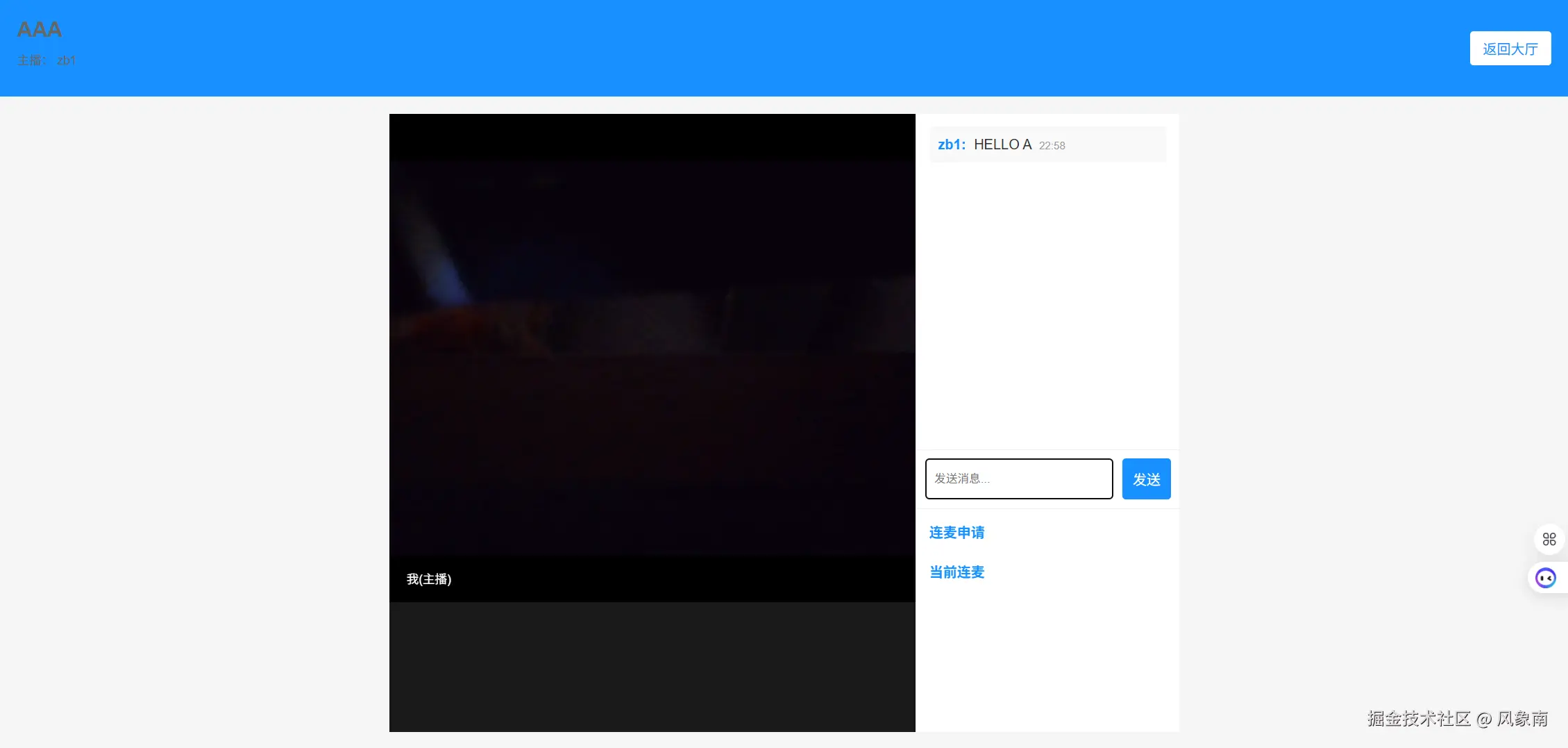 - 后端:基于SpringBoot实现,负责用户认证、直播间管理、WebSocket消息处理等