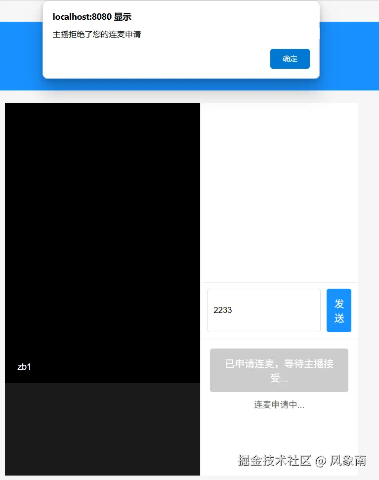 主播收到连麦申请,可以选择接受或者拒绝连麦