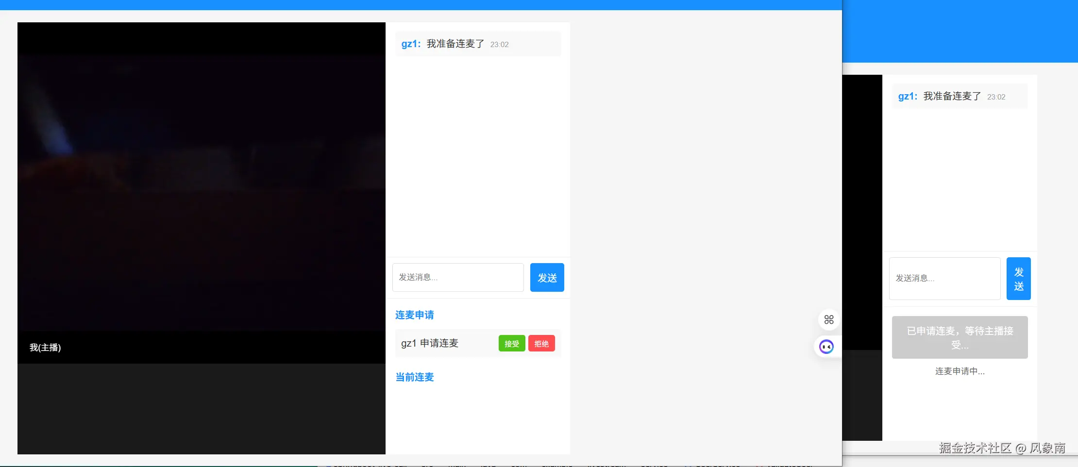 - 观众发送连麦请求,主播确认后建立WebRTC连接