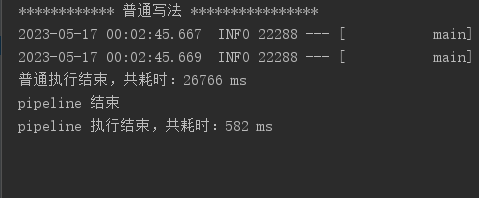 System.out.println("pipeline 执行结束,共耗时:" + (System.currentTimeMillis() - begin) + " ms");