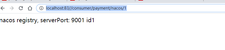 在浏览器输入http://localhost:83//consumer/payment/nacos/1,如果出现如下信息说明访问客户端的代码成功。