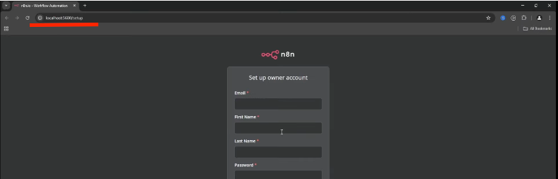 完成上述步骤后,n8n 服务即可通过本地主机访问。