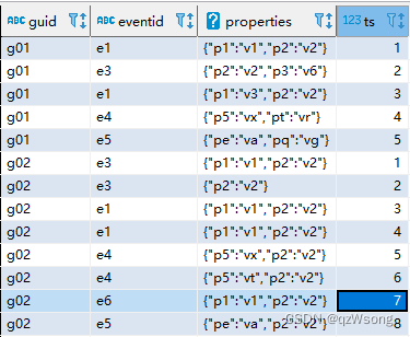 第二步: eventid = 'e4' and properties['p5'] = 'vx'