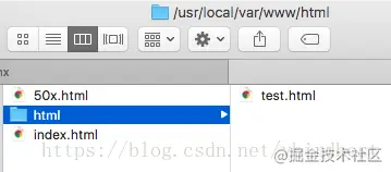 http://localhost/指向/usr/local/var/www/index.html, index.html是安装nginx自带的htmlhttp://localhost/test.html指向/usr/local/var/www/html/test.html