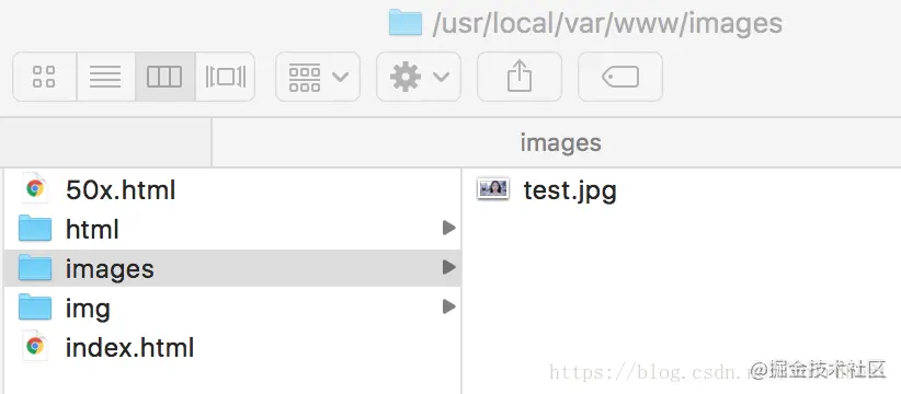 1、在/usr/local/var/www 下分别创建images和img目录,分别在每个目录下放一张test.jpg