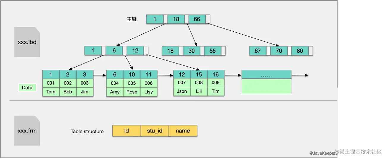 - InnoDB 主键是聚簇索引,MyISAM 主键是非聚簇索引。聚簇索引的文件存放在主键索引的叶子节点上,因此 InnoDB 必须要有主键,通过主键索引效率很高。但是辅助索引需要两次查询,先查询到主键,然后再通过主键查询到数据。因此,主键不应该过大,因为主键太大,其他索引也都会很大。而 MyISAM 是非聚集索引,数据文件是分离的,索引保存的是数据文件的指针。主键索引和辅助索引是独立的。