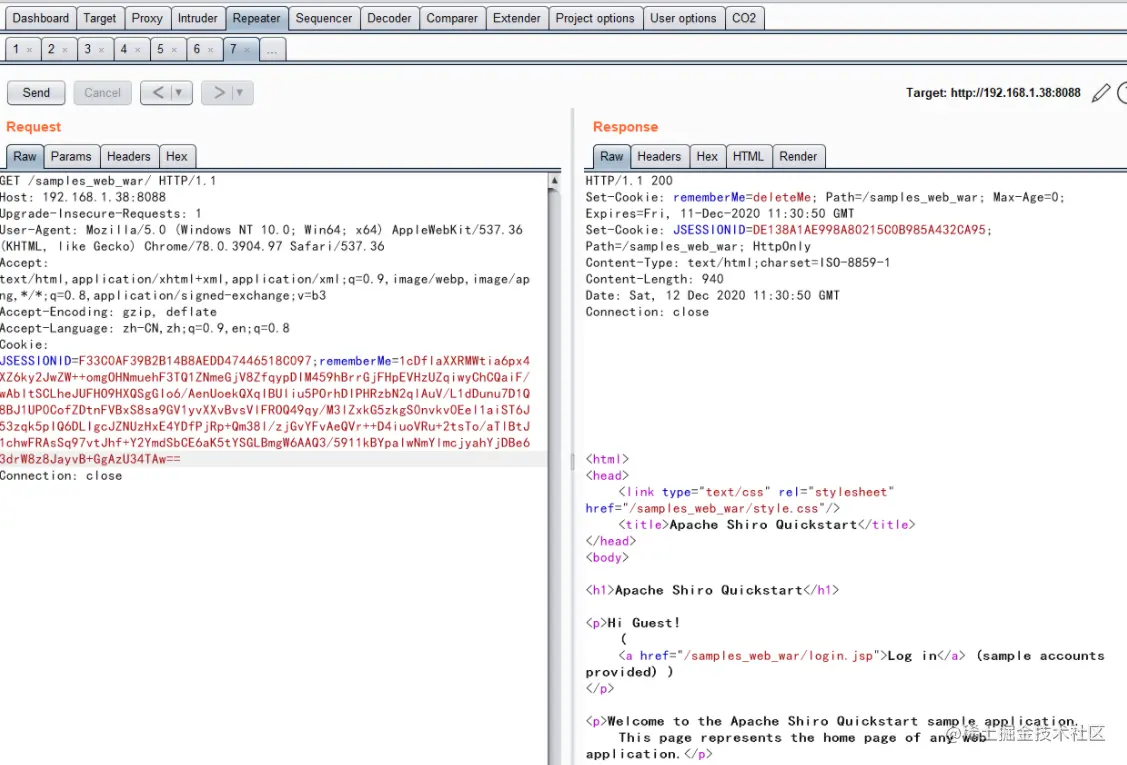 如果返回的数据包中没有remeberMe=deleteMe字段的话,可以在数据包中的Cookie中添加remeberMe=deleteMe字段这样也会在返回包中有这个字段