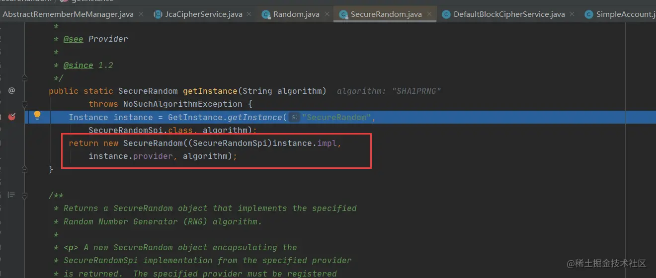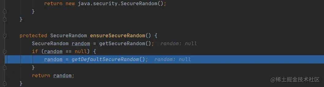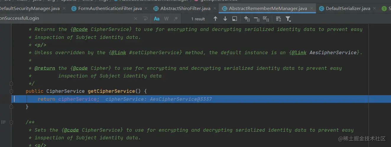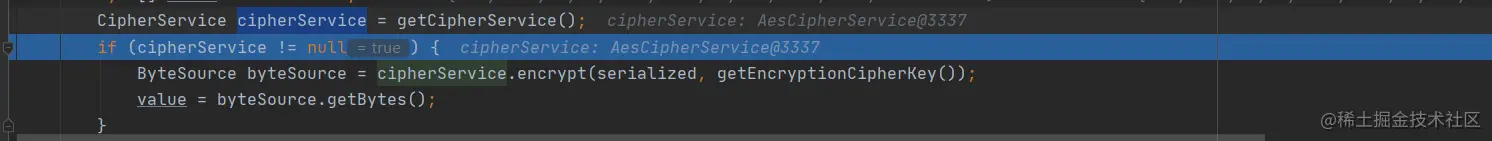 看下面的代码,如果getCipherService方法不为空的话,就会去执行下一段代码。getCipherService方法是获取加密模式。