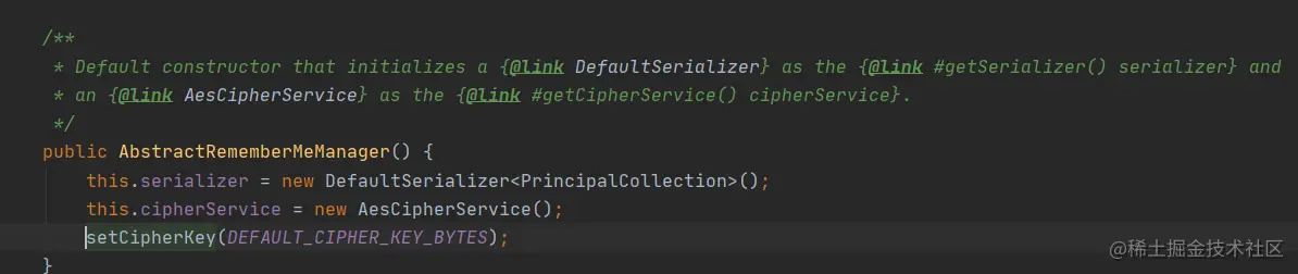 Shiro≤1.2.4版本默认使用CookieRememberMeManager,而且CookieRememberMeManager类继承了AbstractRememberMeManager