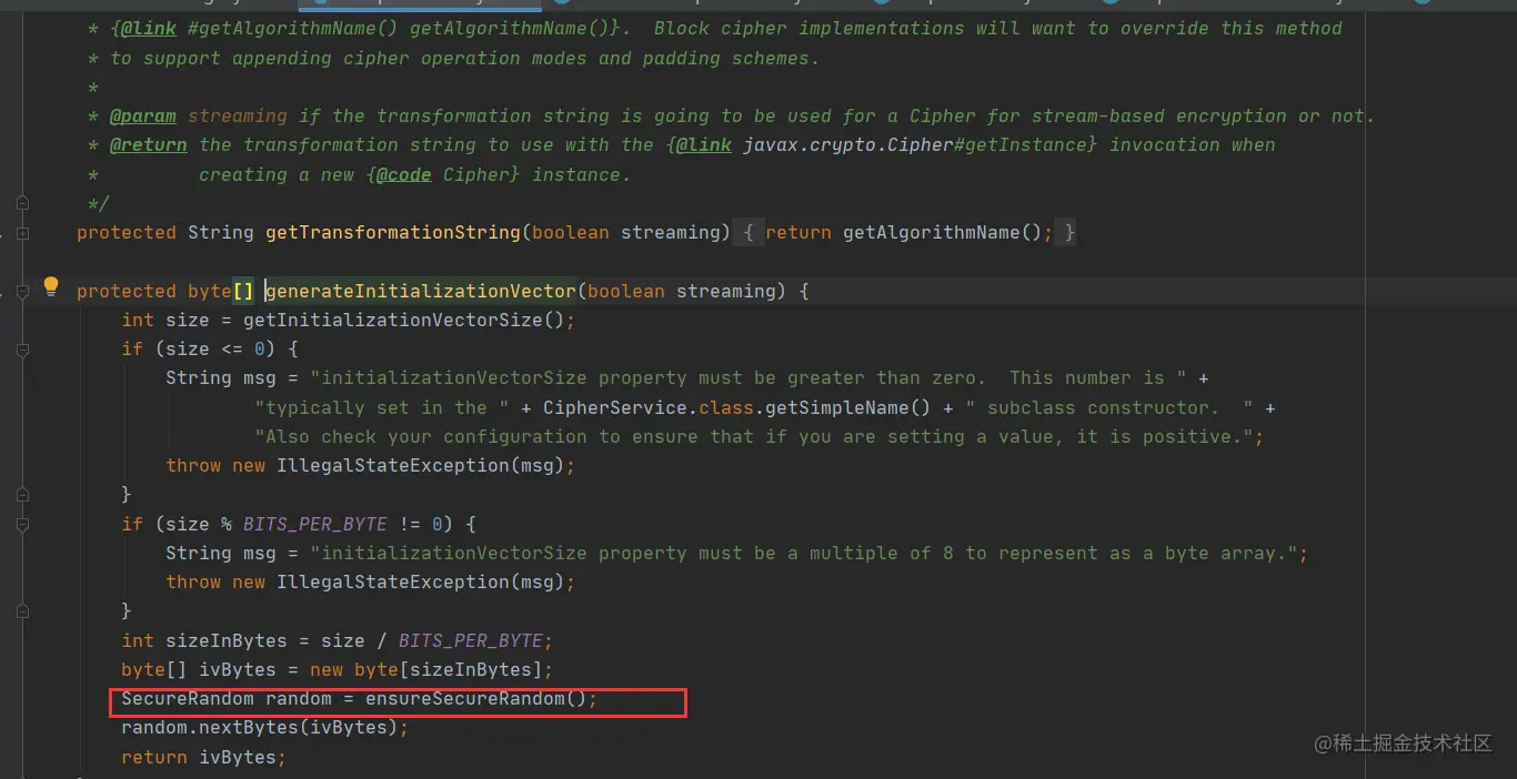 iv的值由generateInitializationVector方法生成,进行跟进。