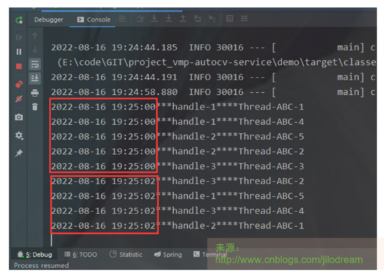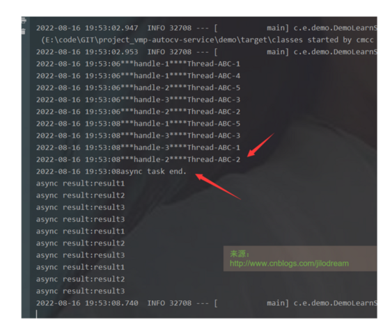 handle1、handle2、handle3的执行结果为乱序,不可预估。这样最简易的通过2个注解即完成异步线程的调用了。
