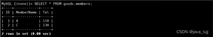 预先插入两条会员数据: