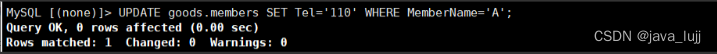 UPDATE goods.members SET Tel='110' WHERE MemberName='A';