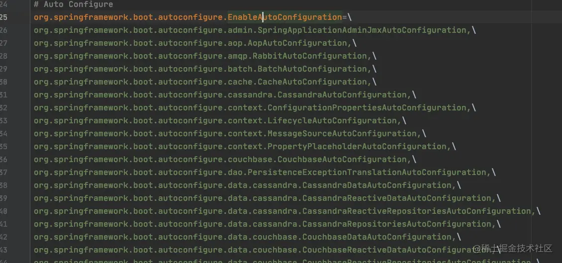 可以看到这里主要就是去加载spring-autoconfigure-metadata.properties文件中的信息进行封装返回,那这个文件里都定义了啥呢: 可以看到这里主要就是定义了一些需要自动配置的类自动装配需要满足的一些条件
