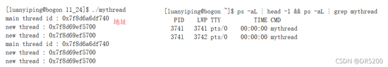 主线程和新创建的线程进程pid和ppid都是一样的,可以看出虽然这是两个线程,但是这两个线程同属于一个进程
